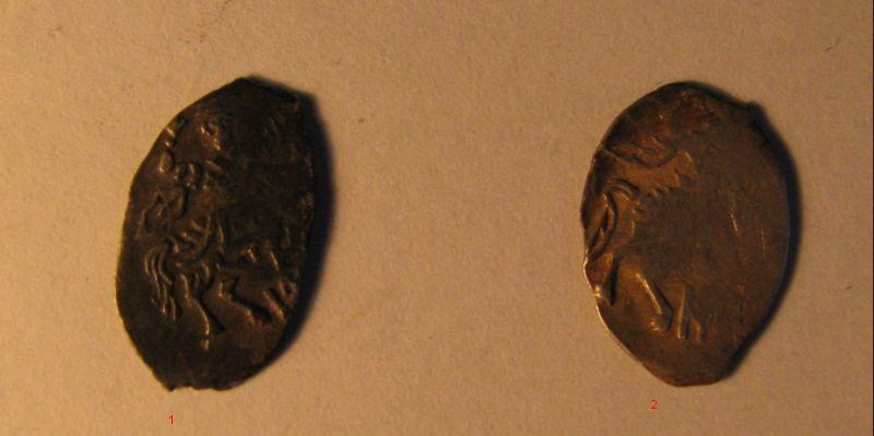QUOTE(Strannik @ May 26 2009, 20:15) вот такая чешуя..предполагаю что МихФед..только непонятно.В гк не нашел всадника с мечом и в плаще...подскажите,может быть плохо искал.... Почему с мечом? Обычные копейки МФ № 602 и № или 611 или 621 (все же больше склоняюсь к 611) |