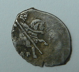 QUOTE(Shaaady @ Jun 5 2009, 14:25) Коллеги, помогите пожалуйста, с определением Грозный, новгородская копейка с буквами К\ВА под конём. Очень простая. -------------------- новый каталог по царской чешуе