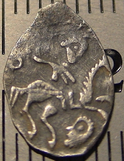 Что то я ни в одном каталоге не нашол такого аверса монеты, где под конем голова человека