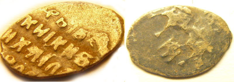 Возможно ли определить, что за монета? Судя по буквам онд, вероятнее может быть монеткой Ивана Андреевича. Можайск. Или Андрея Дмитриевича. |