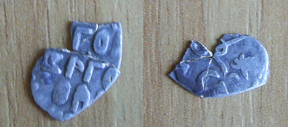 Вот вырыл медную чешуйку - первую для себя. Размеры - 5-7мм (дочь куда-то утащила обе линейки - не смог приложить на фото). Фото чуть подделал в фотошопе, чтобы было виднее - на обратке какое-то изображение - толи лапа, толи голова птицы...