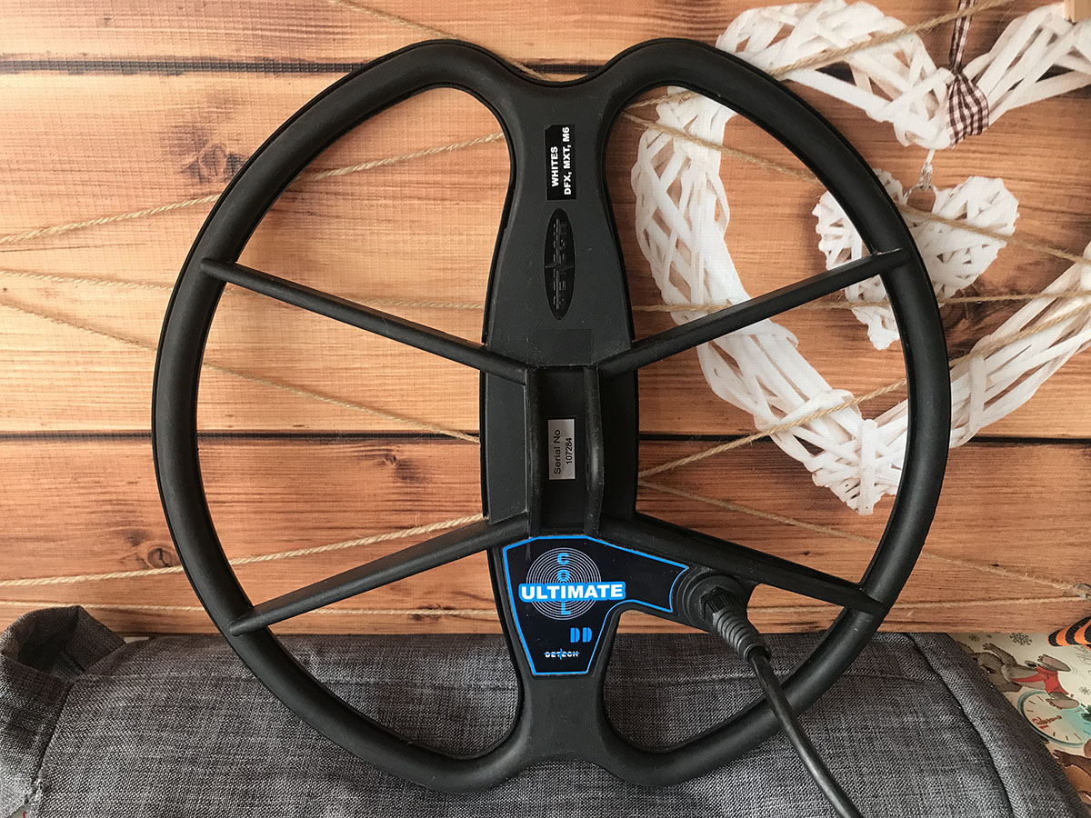 Приветствую, друзья! Весенний предсезонный токсикоз в самом разгаре. Закрываюсь в комнате и "пик-пик-пик": раздражаю семью звуками Спектры. У меня две катушки: стандартная 10" DD и черная Detech Ultimate. Собственно, о ней и речь. Диаметр около 34 см. Вероятно, 12-дюймовая. В полевых условиях отработала неплохо: как и все, очищаю от пробок свой дачный огород. С прибором на "Вы", и работал на заводских настройках с увеличением чуток основных параметров в режиме "три частоты". При домашних тестах обнаружил, что катушка работает на частотах 2,5, 7,5, трехчастотном и в режиме "компенсация на соль". А вот на частоте 22,5 не работает. Наклейка на катушке: "Whites DFX, MXT, M6".