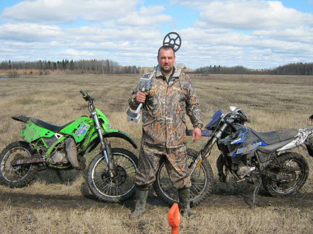 В данном случае цель была разведка определённой местности, а не время махания прибором. В нашем понимании коп это вычисление перспективных мест путём анализа рельефа, высот и пр. добраться туда и проверить свои догадки, и не важно есть туда дорога или нет. Исходя из реалии́ местности либо едем на авто, или на мото (правда мото только у меня) либо плывём на лодке, если не доплыть и не доехать идём пешком с ночёвками. Ездили и на болотоходе и на мотособаках Основная цель, не кайф от экстрима, а добраться до мест, что будоражили голову всю зиму, и кайф от находок. В последнее время ошибочных маршрутов мало, большая часть догадок подтверждается, Находки есть и очень интересные, но данным периодом обычно не принято хвастаться. Кстати следующий маршрут на лодке 300 км в одну сторону. Там уже наверное будет что написать в теме "Встречи с животными"