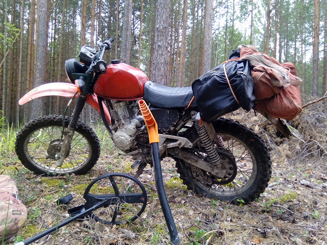Вчера выгулял своего конька. Трассу 100 км прошел на прицепе, дальше 27 км топкая грязь, вперемежку с песчаными гривами. Этот участок туда и обратно занял пять часов чисто за рулём мота. Жара, духота, падения, засады и офигенный драйв. Покопал всего два часа и в обратный путь. До трассы допёр на морально волевых, сил уже небыло, старею наверное. Несмотря ни на что получил огромное удовольствие, мотокоп на эндуро это круто.