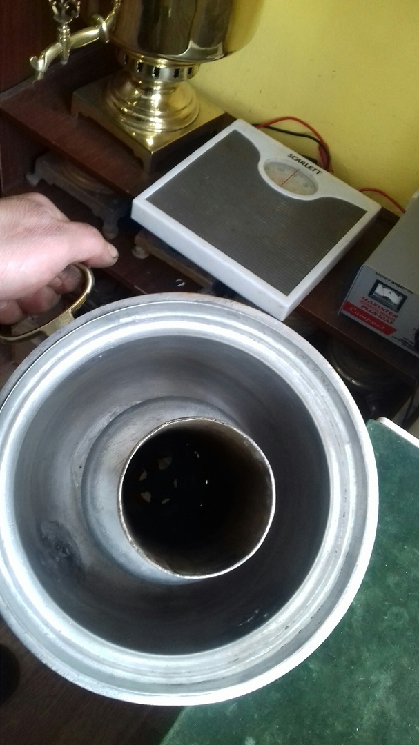 Всем доброго дня.Эти самовары делал я.Обратились ко мне ребята из поискового отряда.Нашли они в одиночном окопе 2 самовара,и хотят привести их в порядок.Я сначала долго не соглашался ,мол объясняю им они лежали в земле почти 80 лет металл свои свойства потерял.На одном вообще вся шея отвалилась.Я им объяснял мол будут каверны,шагрень но им все равно,нам надо чтоб они были рабочие.Бои в тех местах были 42-43г.и кто спрятал их не понятно толи наши,толи местные жители.Об этом история умалчивает.Вместе с самоварами нашли немецкий бачек противогазный полный солидола,причем солидол в отличном состоянии.Попили эти самовары мне кровушки,но все получилось после 80 летнего пребывания под землей вдохнул в них жизнь,чай очень вкусный получился.Сделал как мог,конечно земля дала свое металлу,пятна черные ,шагрень их просто из металла не выведешь.Но людям очень понравилось,и мне приятно что еще 2 самовара обрели 2 жизнь.Писатель из меня ни какой,но написал как есть.Видать что то произошло с хозяином самоваров ,они ведь за ними так и не вернулись.....