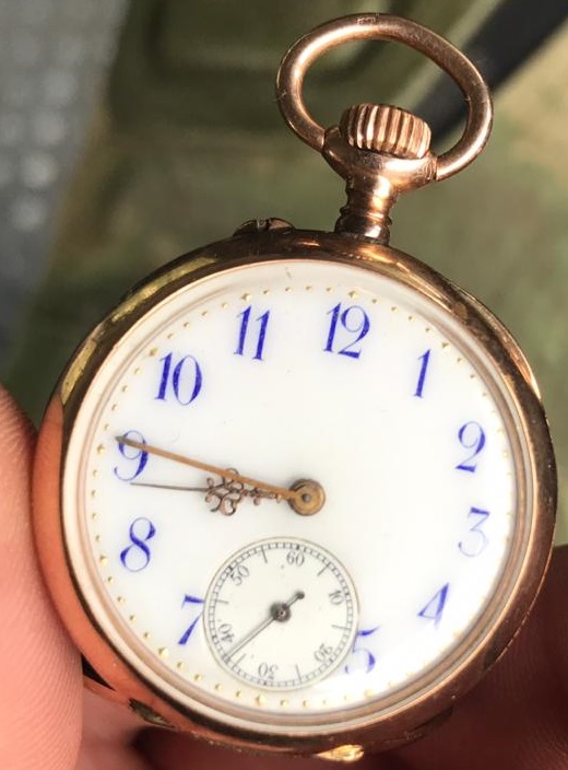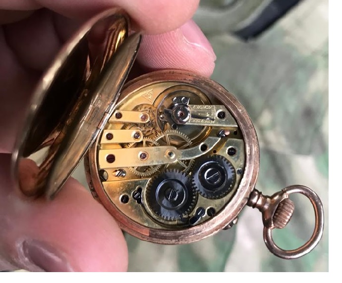 Как часы интереса не представляют.цена равна стоимости металла.Чтобы узнать вес золота,нужно вынуть механизм,снять стекло,внутреннюю крышку из латуни и бигель(кольцо для подвеса).Если нет такой возможности,можно приблизительно считать вес золота как 1/4 общего веса часов.