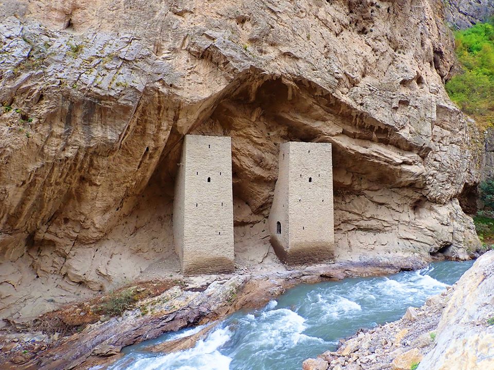 естественно дорога шла в гору, но наборчики были приемлемые и катилось в удовольствие, по дороге встречались различные достопримечательности, в том числе эти две башни, что на фото, которые ранее служили как таможенные, по словам местных.. рядом строится целый туристический комплекс с рестораном и гостиницей и маленьким стеклянным мостом над Аргуном, в общем туризм в Чечне развивается..