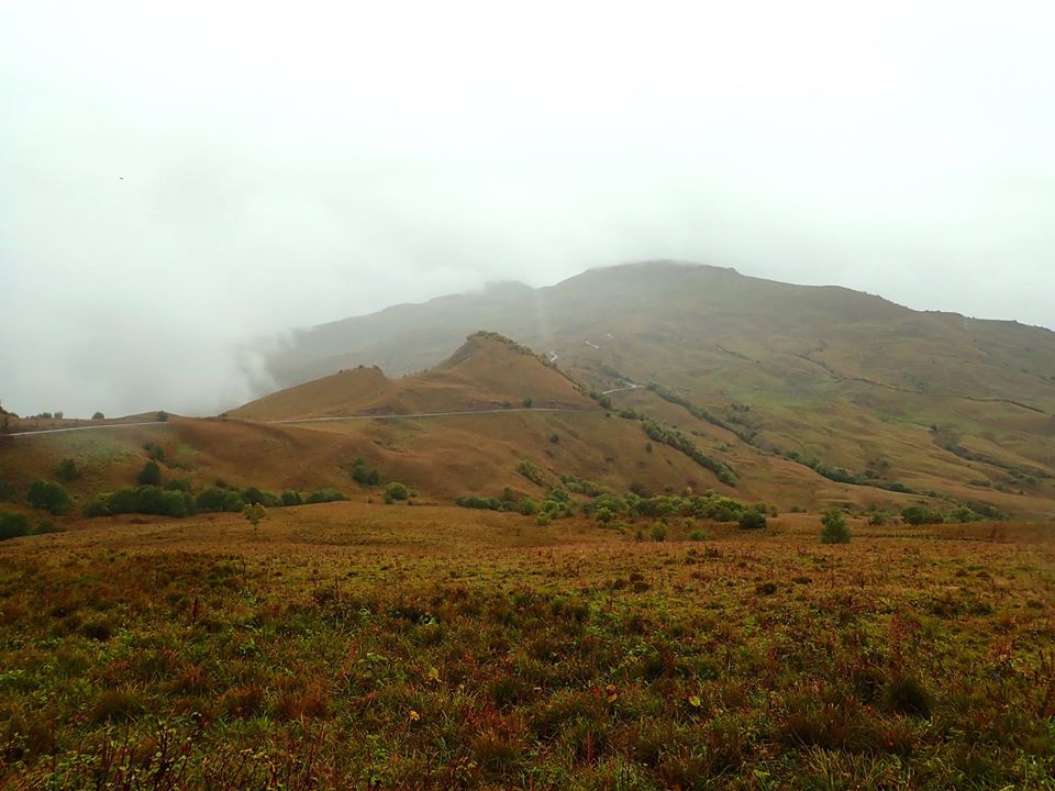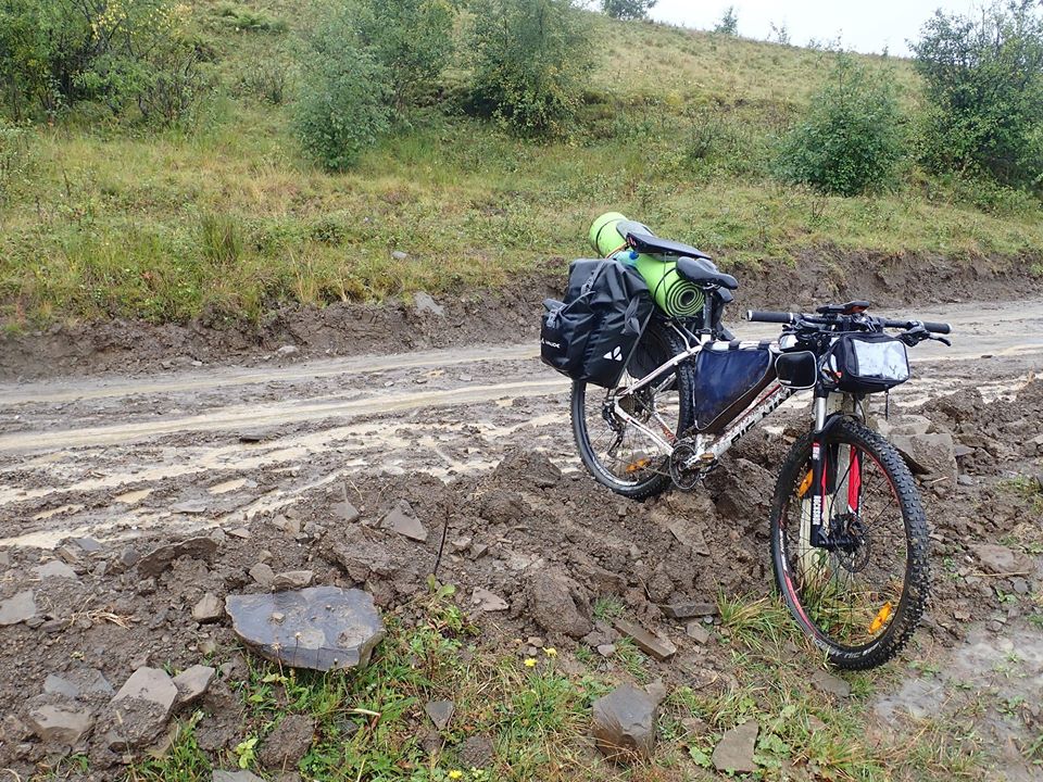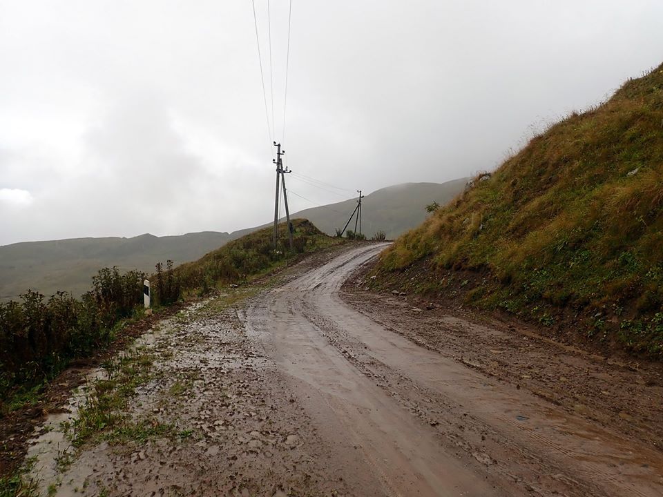 через некоторое время облака оказались ниже меня, но дождик всё равно не прекращался, в некоторых местах приходилось идти пешком, потому что велосипед просто пробуксовывал на подъёмах в грязи, да и я стал уставать..