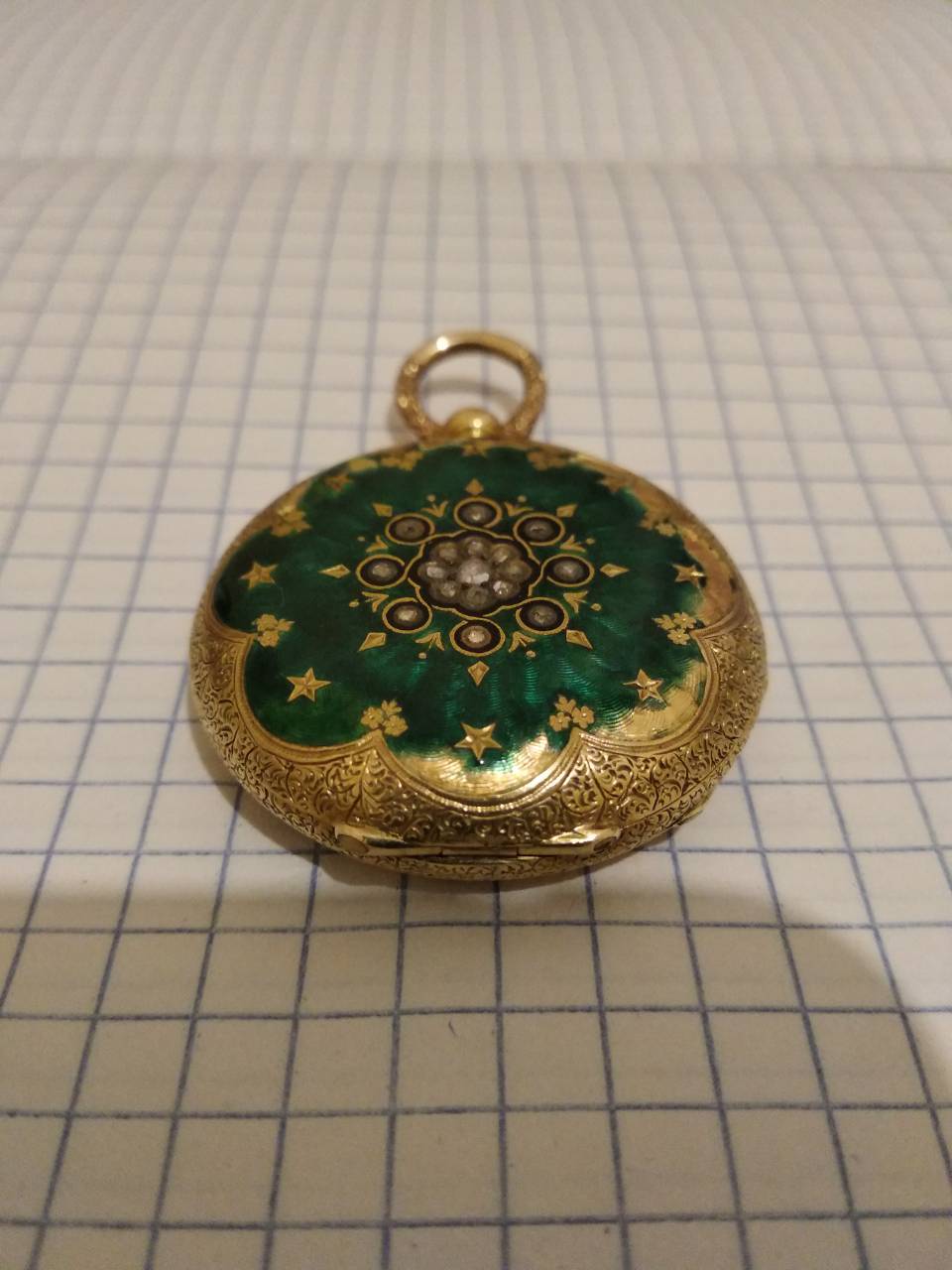 Блин, детский сад. Сделайте нормальные фото механизма и всех (трёх) крышек изнутри. Не надо доставать механизм, если ни разу не пробовали, одно неловкое движение - и нет часов. По мне - механизм неродной, т. к. вижу цилиндровый ход, фото говно, могу и ошибаться. Эмаль на позолоту не положишь, так что склоняюсь к благородному металлу.Т.к. есть эмаль, даже по плотности не определить удельный вес металла, в случае 585 д. б. около 13,5 гр\см. куб. И эмалированные крышки снимите крупно без бликов. Часики красивые, конец 19 - нач. 20 вв, Швейцария, клеймо производителя может быть под одним из мостиков. Найдите проверенного часовщика и Бог в помощь.