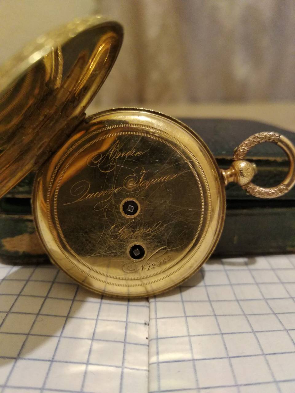 QUOTE(Antik.rest. @ Mar 27 2020, 18:13) Приветствую!Часы швейцарские,2 половина 19в.Механизм анкерный,ключевка.Почему решили,что не родной?Часы,кстати ходят?Какие нибудь клейма на крышках должны быть,может мелкие?В то время были и позолоченные часы.Если вынуть механизм,по весу сразу станет ясно,золотые или нет. Спасибо за ответ. За механизм так мне сказали. На крышке есть цифры 69, думаю это последние цифры номера? Другого ничего не нашёл. -------------------- Лучше потерять с умным, чем найти с дураком.