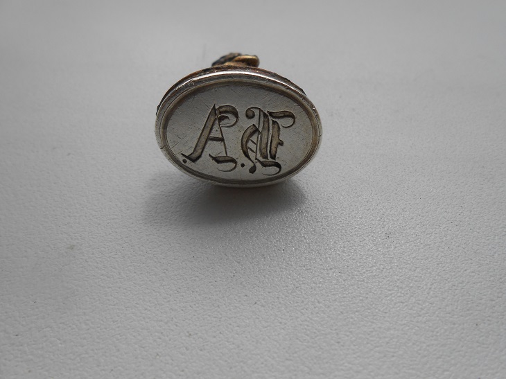 Интересно, кто обычно делал себе такие? Найдена на фундаменте обычного деревенского дома. Размер: высота 3 см. Сама печать 2,2 см х 1,7 см. Материал бронза, рабочая часть - серебро. Не могу понять какая первая буква - подскажите, вторая буква А. Оттиск пока не могу предоставить, нет под рукой пластилина. Какова приблизительная оценка на данный предмет. Спасибо Вложенные эскизы изображений |
