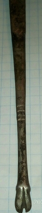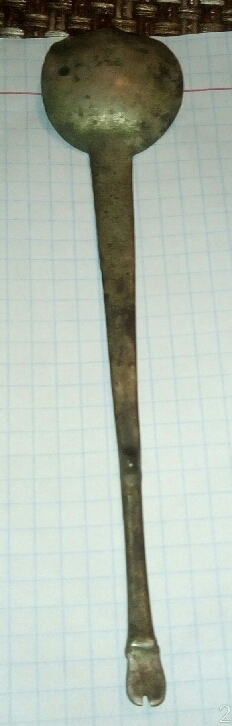 Возможно ритуальная/шаманская ложечка , занятно, что окончание сделано в форме ноги лося с копытом (может быть тотемное животное было). Тему лучше наверное перенести в раздел "находки" или " металлопластика", только сначала фото нормальные сделайте. -------------------- Последние цифры карты ... 2029