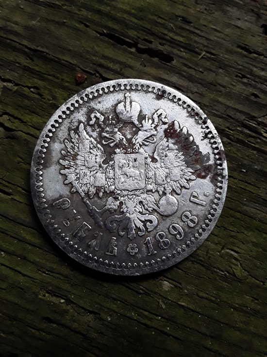 Снова побывал в заброшке, где на чердаке были хорошие находки. На этот раз, ковыряясь в старом ведре, заметил на дне крупный кругляш, цветом похожий на серебро. Немного погодя на свет божий был извлечён целковый, видимо давно уже тосковавший там в компании со ржавыми железками! Радовался целый день, как бабуин!