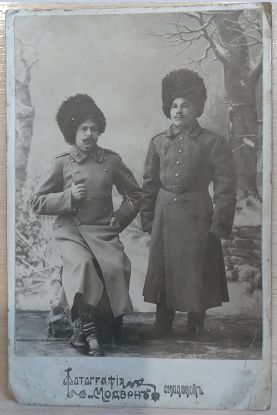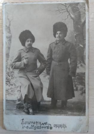 Фото не увеличивается никак, усмотреть на нём что либо не представляется возможным. Предположу, что на фото нижние чины одного из сибирских стрелковых полков.
