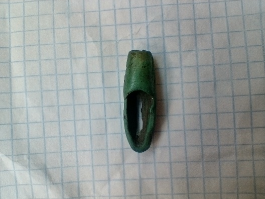 Приветствую.. Видится наконечник "заячья голова", от какого то девайса типа ложки или рукоятки с шила.. Смотрите по сопутке и региону, видится древнятина, возможно домонгол... Регион имеет значение..