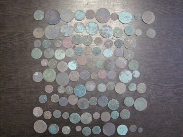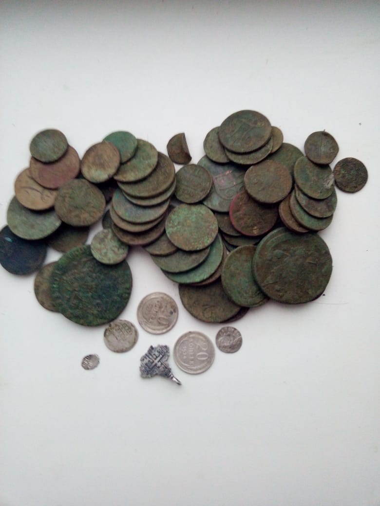 Добрый вечер товарищи,расскажу как закрывал сезон. С ранней осени приглядел два поля где хорошо поработали коровы.В первых числах декабря решил на этих полях закрыть сезон,выехал рано утром путь чуть больше 100км. но как только выехал пошел очень сильный снег,планы как ,Вы знает у копа не меняются они слегка корректируются.Еду понимаю что по полям ходить не получится начал думать где можно по шурфить и вспомнил одно местечко:немножко серебра и 108 медных- от Перта до Александра-1 в основном монеты номиналом 2коп. Елизаветы Александра, основные находки были на 1квадратном метре в районе печи.