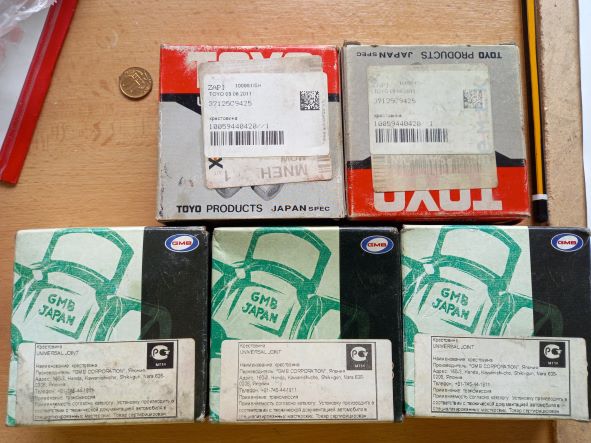Забыл. Добавлю 5 новых разных крестовин и комплект ношеных колодок, 2 пыльника гранат.