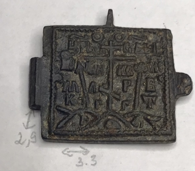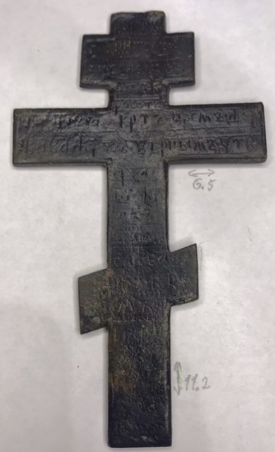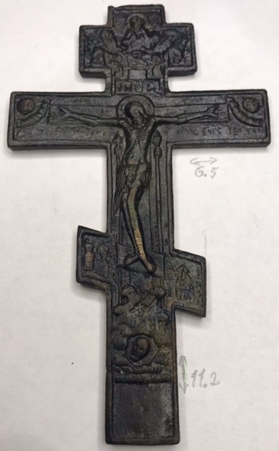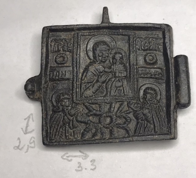 Крест киотный староверов поповского согласия 19в., створка складня "Поклонение иконе Смоленской Богородице - Святитель Никола Чудотворец" 19в.