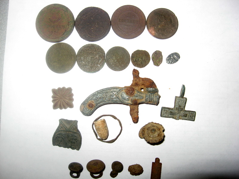 В прошлом году вырыл прохором кольцо диаметром см 30-40. Гариком 2500, лет 5 назад от бочки обруч. От печек старых чугунные тож попадались.