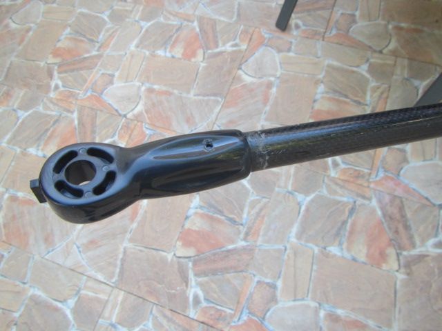Себе сделал аналогичную, трубка карбоновая 1 метр, нижняя штанга родня длинная, ручка - рог от велосипеда, подлокотник родной, зажим для телескопического соединения нашел в интернете от какой то фототреноги. Итог стал легче, оперативно можно выдвинуть штангу на максимальную длину, легче водить за счет того, что блок развернул горизонтально.