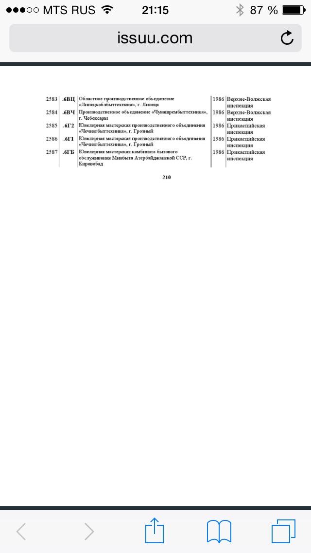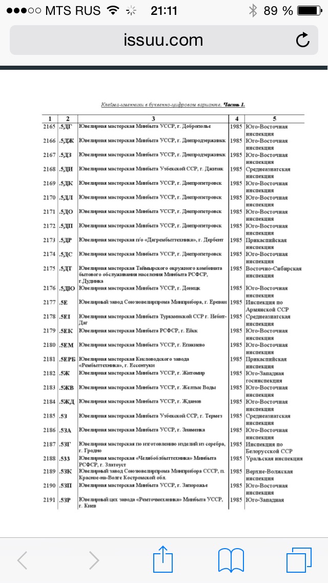 QUOTE(Chal @ Mar 12 2015, 14:21) Второе клеймо - именник. В современных именниках первый символ обозначает год, второй - пробирную инспекцию, третий и четвертый - производителя. В вашем случае предположу, что 6 обозначает год, а ДЛ - производителя. Спасибо что откликнулись Да то, что год я знаю и знаю что 1986 ( .6 ) на 1-фото видно Это обозначение этого года а вот ДЛ это тоже известно пример фото-2 строка 2170 Только год 1985 В этом же каталоге есть именики .6 только заканчиваются на ГБ Фото-3 Каталог фото-4 Вопрос что за клеймо, и почему его нет в каталоге ? И что значит Первое клеймо ? Сообщение отредактировано brat-aleks: Mar 12 2015, 17:21 Вложенные эскизы изображений -------------------- не Куплю золотые,серебрянные рубли, клады