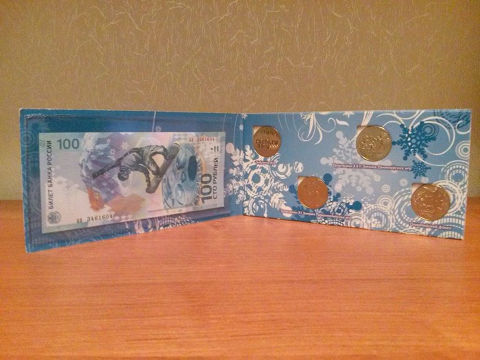 Продам 4монеты в блистерах+100руб.(бона) посвященные "Зимней Олимпиаде 2014г. в Сочи" подарочном альбоме, размеры альбома 15см*21,5см., 1комплект 1050руб+ пересыл 170руб.