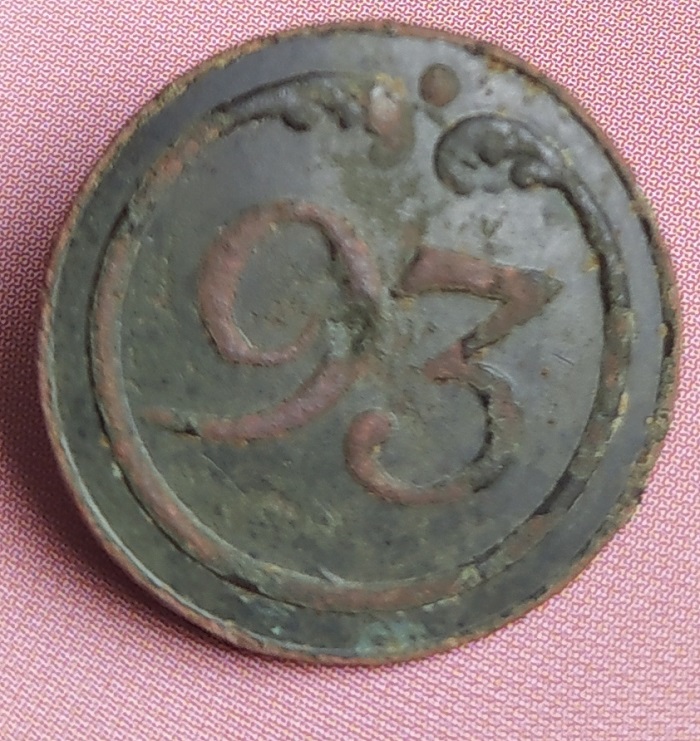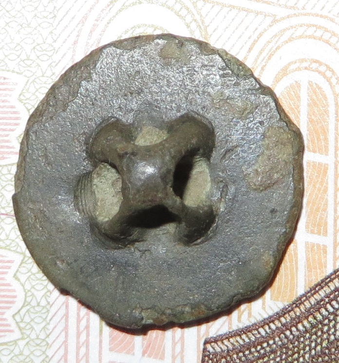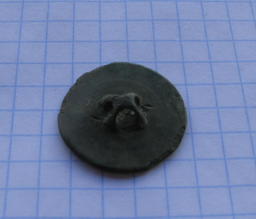 Пуговица гвардейских полков ВА на 1812г. Самая частая пуга ВА, цена как пересыл (практически, каждый полк ВА имел собственные пуговицы, а гвардейские полки были многочисленные, несколько дивизий). В вашу область попала, скорее всего, с пленным или как трофей, и могла использоваться в быту лет сто после войны.