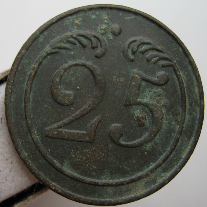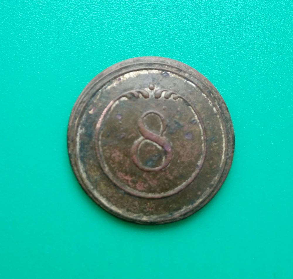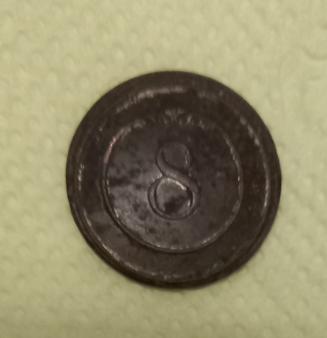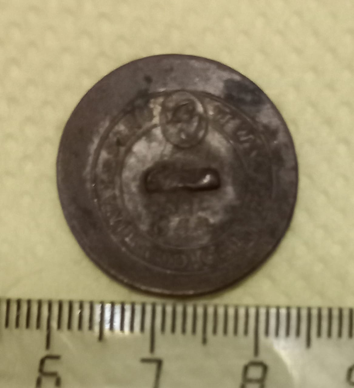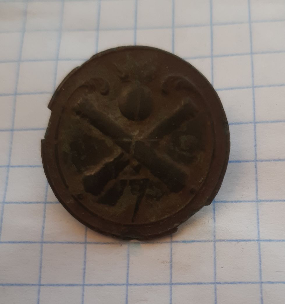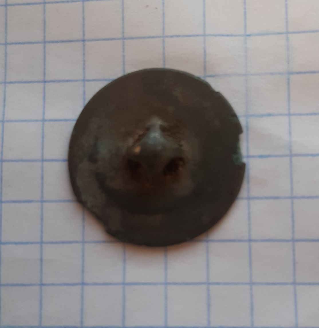 Здравствуйте! Подскажите пожалуйста по пуговке. И по возможности оценить ее в таком состоянии. Спасибо.