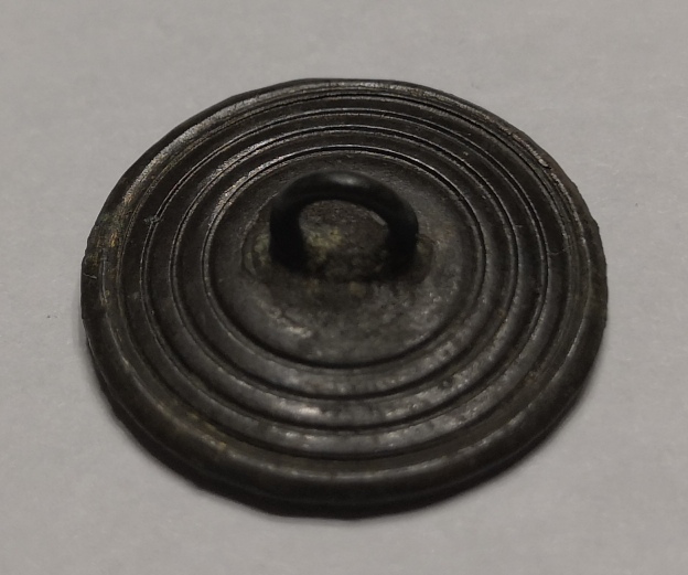 Все 3 пуговицы найдены на территории станицы 18 века, которая в середине 19 века вместе с домами переехала на другое место. В основном глубина залегания до 2х штыков, но самая большая 26 мм находилась почти на 1,5 глубине. Сопутка монет: свинец, толстая керамика, деньга, полушка.