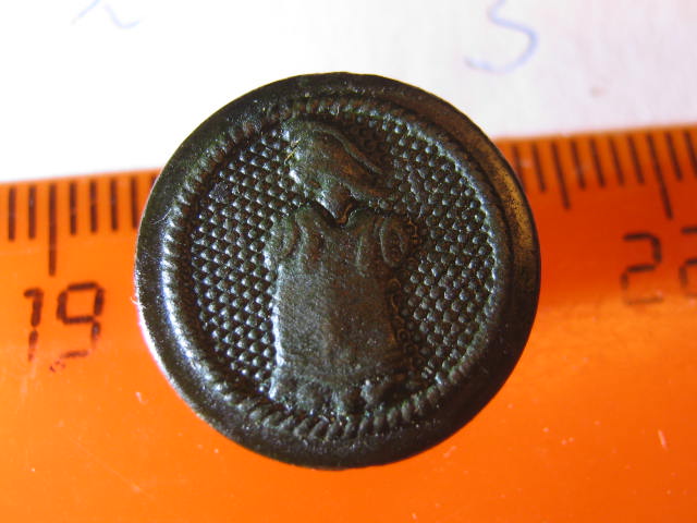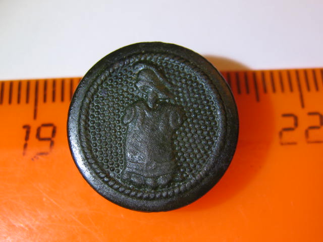 Здравствуйте, помогите пожалуйста определить и оценить пуговку, состояние приличное, нашёл похожие в интернете, но у них другое крепление почему то. Заранее благодарен. С уважением.