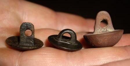 Такие вот пуговицы найдены среди регламентных французских на месте сожжения трупов солдат В.А. Ушки у всех сверлёные. Может с пуговицы с длинными ушками - гусарские?