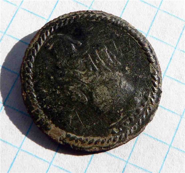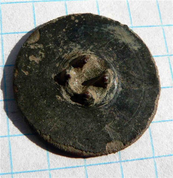 Парни, помогите определить данную пуговку, найдена в Тульской области, сопутка несколько затасканых чешуек грозного. Прошу прощения, за фото, сделано в полевых условиях, пуговка находится в чистке в данный момент, обратка 4ушка.