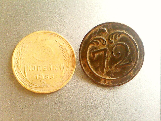 Диаметр 19 мм. . Не знаю какова она была изначально, выпуклая или ровная, а сейчас она имеет углубление на лицевой стороне Сто пудов какой то немчура молотком отрихтовал... Вложенные эскизы изображений -------------------- Sed magis amica est veritas.