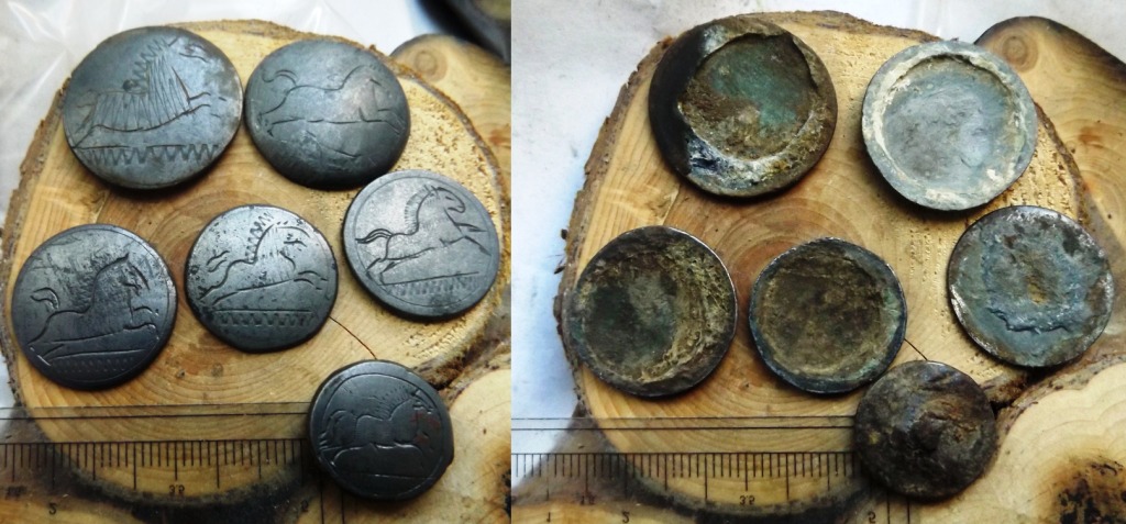 Доброго времени суток!Подскажите по пуговицам,есть ли какие интересные пуговки и оценить.Не мыты,не чищены.Спасибо всем ответившим.С уважением Денис.