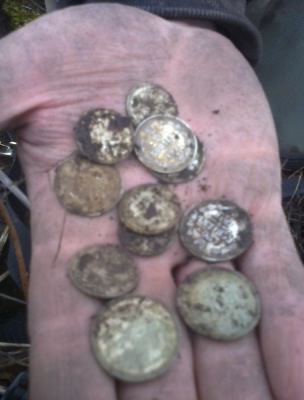 Думаю, что вопросы по сохрану монет так же развеял. Сохран действительно - кладовый. На фото виден сохран монет, ничего не чистилось. Фоткал, так сказать, с пылу - с жару!
