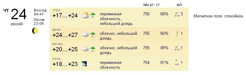 QUOTE(jeka.piter @ Jun 25 2010, 23:28) Я бы тоже приехал но с ночевой, а там как я понимаю поселок живой с местными рядом совсем. Или там есть где заночевать встать несмотря на то что может быть 12 мм осадков в час ночью http://www.windguru.cz/ru/index.php?sc=142052 Понятно что с ночевкой. У нас то весь день дождь, а тут тока ночью. Ты надумаешь позвони мне плиз, тел в профиле есть -------------------- Куплю фотографии до 1917 года