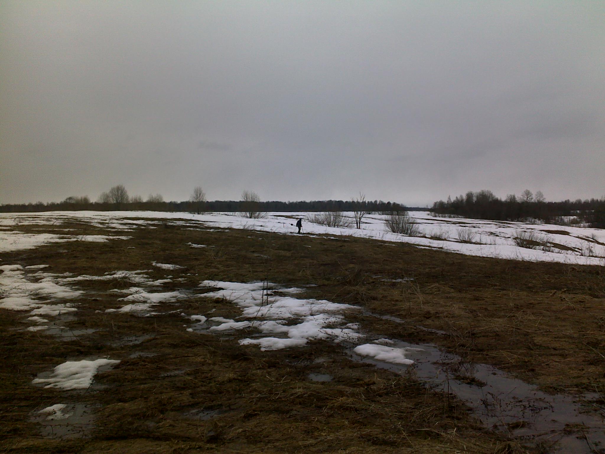 Практически ничего. Размялся пол часика. Погода очень некомфортная. Много снега, проталин совсем мало. Сумашедший ветер сбивает с ног. Желание копать быстро испарилось