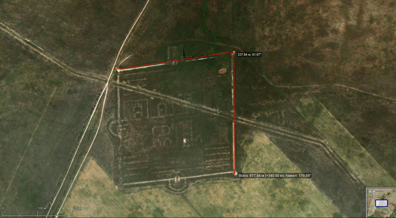 Что скажете? На что может быть похоже? Крепость? Иное оборонительное сооружение? Городище? Размер грубо 340х340 м.