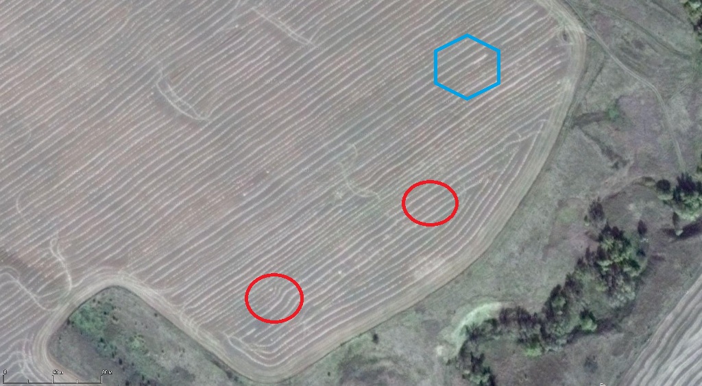 Сходил на одну деревушку рядом с городом, за 4 часа ни одной находки кроме поясков снарядных ну и прочего цветного хлама. По снимку странно поле на квадраты поделено, на местах края квадратов выглядят как кучи битого кирпича и камня. Такое впечатление, что когда то была выемка грунта, но почему не сплошником, а по квадратам? Может у кого какие мысли есть?