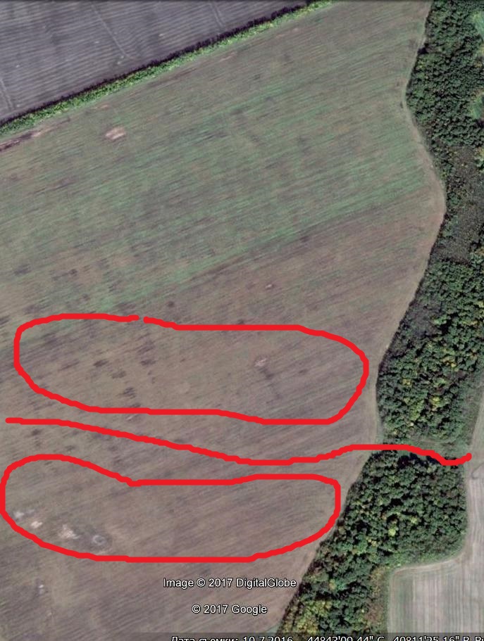 QUOTE(Eric_Cartman @ Jul 13 2017, 21:42) Спасибо! Будем присматриваться внимательнее. А на месте данные землянки как то отличаются или это видно только со спутника? За много лет они так заплывают дёрном, что стоя рядом порой не поймешь что тут была землянка...иногда ногами ощущаешь когда идешь легкий подьём или спуск (5-10 см)...а как поднимется трава, их найти вообще сложно. Фишка со спутником в том, что сверху ты видишь немного другую раститительность, которая выражает следы обитания и характерна для построек.(пятна, потёртости на снимке). -------------------- знаю что ищу,не знаю что найду...