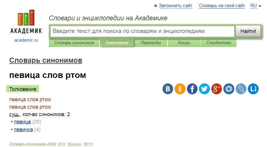 QUOTE(Cruyff @ May 30 2022, 00:33) Честно говоря, ничего не понял. Причём тут пендосия? Слова-то русские. О том и речь. Слова то русские, но выражение заимствовано от пендосов. По-русски "певец", а по ихнему "певец слов ртом", согласно Словаря синонимов ASIS. Вероятно машина, переводящая их тексты на русский язык с целью дальнейшего размещения, допустим в сети Интернет для русскоязычной аудитории, не очень то хорошо настроена. Предположу, что оттуда и пошло "певец слов ртом". Искусственный интеллект, однако... А у нас это выражение смотрю закрепилось, заимствование, однако ... Что есть ASIS (и их Словарь синонимов ASIS, как первоисточник)? Это - American Society for Information Science and Technology, sometimes known as the American Society for Information Science (ASIS). Перевод - Американское общество информационных наук и технологий, иногда известное как Американское общество информационных наук (ASIS). Банк слов словаря, в автопереводчик на русский, получается, что они готовили. От них и пошло "певец (слов) ртом". Им и адресуйте свой вопрос: "А чем же ещё должен петь певец, как не ртом"? Сообщение отредактировано Молотов: May 30 2022, 01:39 -------------------- В Вконтакте и других соц. сетях я не зарегистрирован, там не торгую и не покупаю!!!
