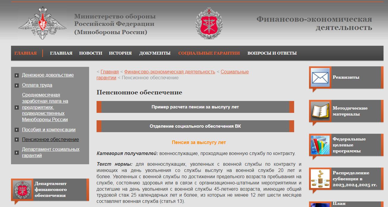 Как выясняется, но не все люди знают, что "военная" пенсия (при возрасте 45 +), может быть назначена, в том числе, и при смешанном (суммарном военном и гражданским) общем трудовом стаже 25 календарных лет (и более), из которых не менее 12 лет 6 месяцев составляет военная (приравненная к ней) служба. Таким образом сейчас, практически любой человек (годный по состоянию здоровья) прослуживший в прошлом в армии (а равно в МВД, ГПС МЧС, Наркоконтроле, ФСИН, нац. гвардии), имеющий сейчас гражданский стаж не менее 12 лет 6 месяцев (одно из основных условий для данной пенсии) и "военную" (любую из указанных выше суммарную) выслугу в районе 12 лет (и более), подписавший сейчас с МО РФ контракт и прослуживший в зоне проведения СВО на Украине (из расчета один день за три) - может подать заявление в пенсионный отдел МО РФ для назначения "военной" пенсии по линии МО РФ (даже если до прохождения военной службы в МО РФ он только проходил службу 12 лет, допустим, в милиции/полиции МВД и т.д.)... ************************************************************************** Тут еще работает ведомственный принцип "пенсию назначает тот орган, откуда человек уходит на пенсию" (так как в данном случае выслуга человека в различных ведомствах суммируется). Да, еще. С основного гражданского места работы, до заключения контракта МО РФ, человек обязательно должен быть уволен (а не находиться, допустим, в отпуске без содержания и т.п.). Т.е. уход на военную пенсию только с МО РФ, а не сейчас с гражданки, при этой же суммарной выслуге. Ниже скрин с сайта МО РФ. Сообщение отредактировано Молотов: Sep 22 2022, 09:56 Вложенные эскизы изображений -------------------- В Вконтакте и других соц. сетях я не зарегистрирован, там не торгую и не покупаю!!!