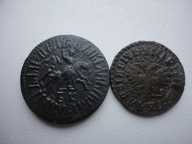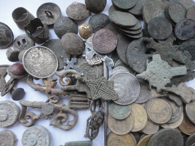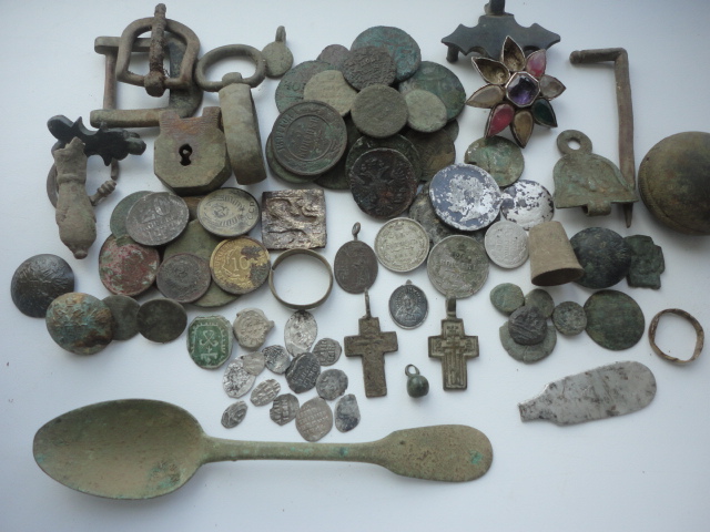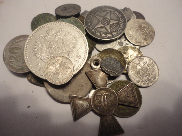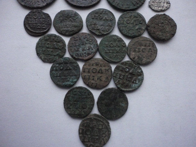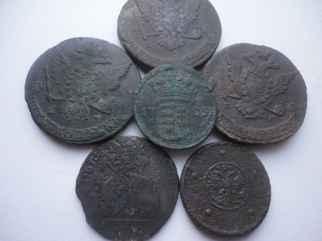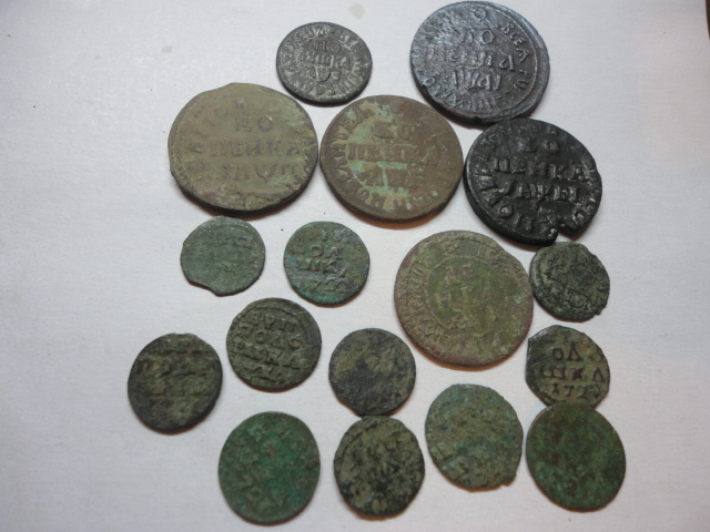 Зима выдалась морозная но очень снежная, снегу навалило с пол метра, собираясь на работу (как всегда опаздывая) выбегаю на улицу завожу машину , а она не издает не звука, сел аккумулятор. До работы километра 2-3 на прямую, но снега много, делать не чего пришлось идти. Путь лежал через маленькую деревеньку, местных жителей человек 7-8, благо что один из них, прочистил дорогу личным трактором. Проходя по деревни заметил, что в одном месте трактор задел фундамент, и еще подметил что земля под снегом совсем не заморожена, на работу пришел по колена в грязи. На обратном пути решил посмотреть это место, холодно было земля начала подмерзать, но прямо рядом с половинкой кирпича лежала монетка, кинул в карман и поспешил домой. Монетка оказалась полушкой 1731 года. На следующий день после работы зашел к местному жителю, благо знакомы, и попросил у него разрешение поковыряться весной на этом фундаменте. Он с усмешкой, да копай хоть сейчас , земля мягкая как весной, снег убрал и рой. Так мы с другом и поступили, копали не спеша 6 недель, на участке 20 на 10 метров было найдено не менее 8 фундаментов, некоторые располагались один на одном. Копали в глубину метра на полтора не меньше до белой глины. Итог, более 1000 монет от чешуи до советов, это только мои. Ну и копанины с мешок. Ну и небольшой фотоотчет. Вложенные эскизы изображений |