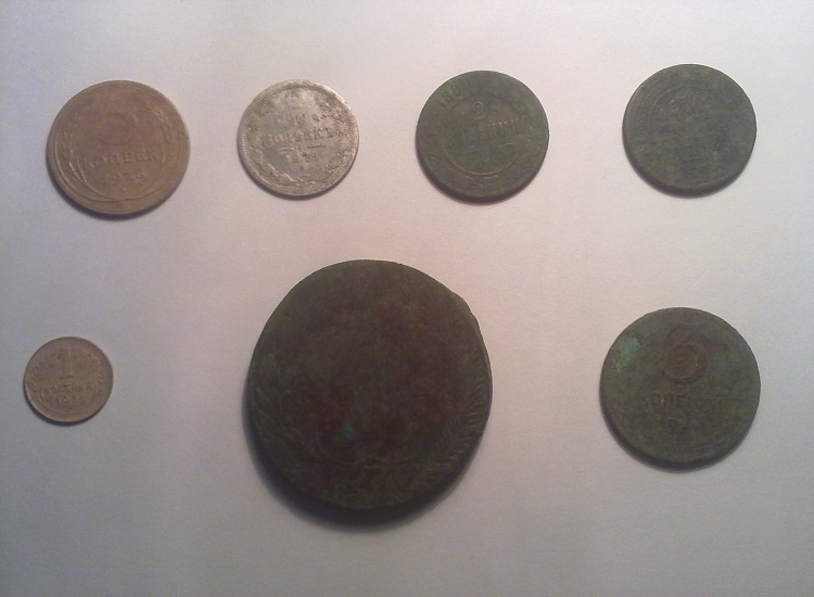 На форуме в первый раз-не судите строго.Копаю первый сезон.Второй день бью фунд трёхдворовой поселухи , исчезнувшей до войны.За первый день-треть фундамента и одна монета-3 коп. 1929 г. День второй: 1 коп. 1931 г. 5 коп. 1928 г. 3 коп. 1924 г. 2 коп. 188? г. 2 коп. 1903 г. 20 коп.1879 г. 5 коп. 1766 г.( вживую увидел в первый раз,подумал что какая-то шайба. Да и не ожидал). На днях поеду добивать. За фото не бейте. |