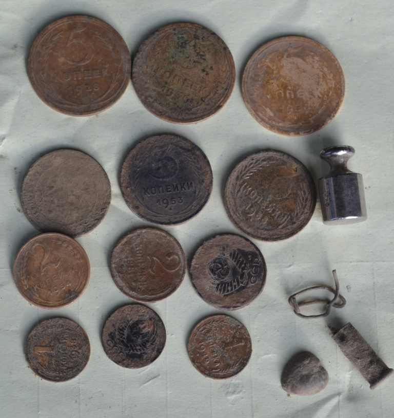 Добрый вечер. Сегодня решил первый раз пошурфить фундамент барского дома. В советское время в доме располагалась деревенская школа. Только фунд какой-то непонятный, то-ли он был кирпичный и его сдвинули трактором по направлению в дом. Попадаются большие оштукатуренные куски фунда или стен из красного кирпича. В общем сам фундамент находится заподлицо с уровнем земли, а внутри по периметру всего дома кирпич перемешанный с землей высотой примерно 80 см. от уровня земли(находки на фото от туда). Может кто подскажет стоит ли раскапывать эту гору кирпича, или шурфануть сначала сам фунд. На самом фунде углубился где-то на 50 см. нашел консервн. банку и гирьку. Также идет кирпич с землей.