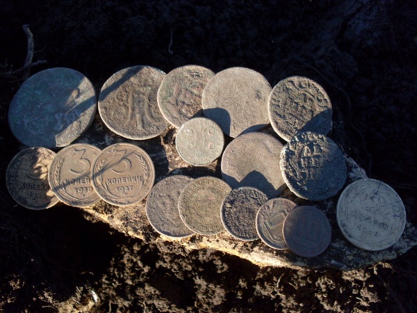 Первая находка полушка АИ Вторая, третья, Перстенек: Потом Денга П, ВРП, далее слышится слабый-слабый сигнал - решено копаем. 5 минут копаем, 10 минут копаем, вообщем копали до усталости. Выкопали - Одним словом, по нашим соображениям, попали мы на полуземлянку времен Петра. Почему Петра? находки были только чешуя МФ, копейки П, Полушка П, ВРП. Да и глубина до метра. Вообщем не плохо отдохнули, ну и не без этого - на..ались. Всегда приятно найти, но главное не терять друзей. Разговоры по мобильному в течении недели, никогда не сравнить с приятным общением, приколами, подколами в выходной день. И соответственно итог: 3 копейки П, Полушка П, Денга П, ВРП, Денга АИ, полушка АИ, 2 перстенька, чешуйки, копье, рукоять ножа, вообщем все на фото. Всем удачи! |