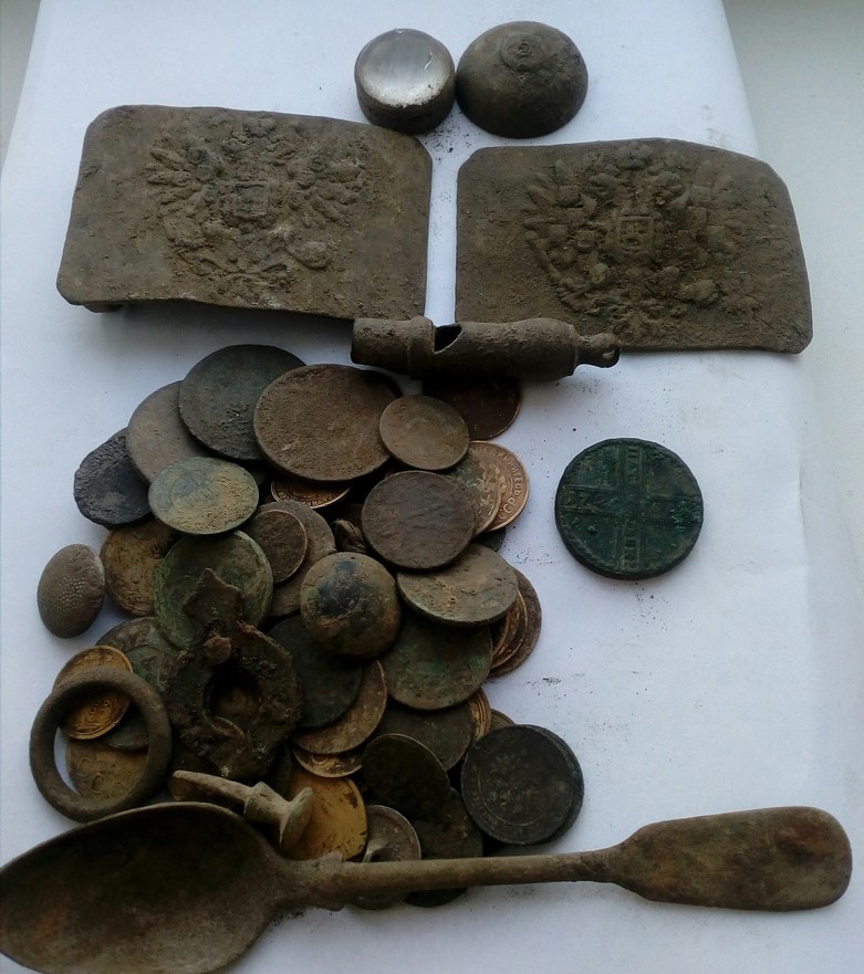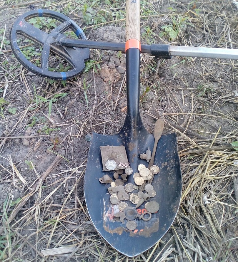 Сегодня с утра вырвался, деревенька в 2 км от города, выбрал самый загаженный советский фундамент, травы нет почти коровы все вытоптали, час покопал копанинка, десятка 3 советов, вдруг четкий глубокий сигнал под камнем, копаю - выскакивает крестовичок, в машину за телефоном сфоткать, опа телефон дома, назад на фундамент, выворачиваю камень- хана лопате. День не задался