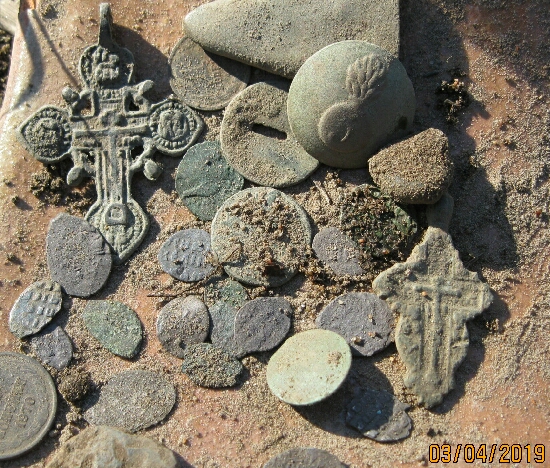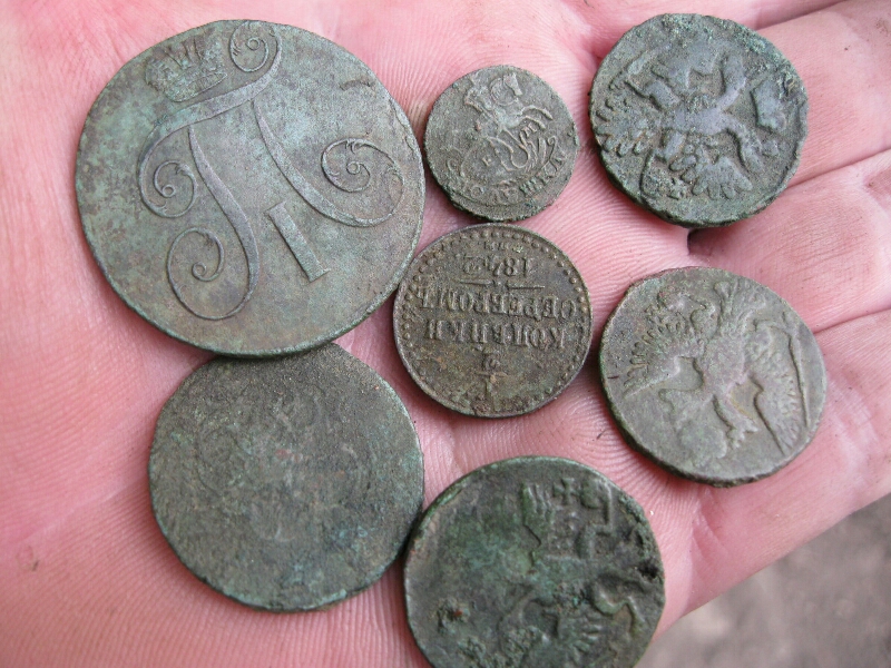 Как то шурфил один домишко старенький и защурфился со стороны двора , там где дверь из дома во двор располагалась.Вот между этим переходом 2 пятка Екатерины II выкатились да гривенник лысенький с манисто,немного советов.Когда в дом зашел, как отрубило , сапоги пошли пачками да бутылки советские вперемешку с костями и керамикой, весь подвал изрыл а находок в подвале нет.