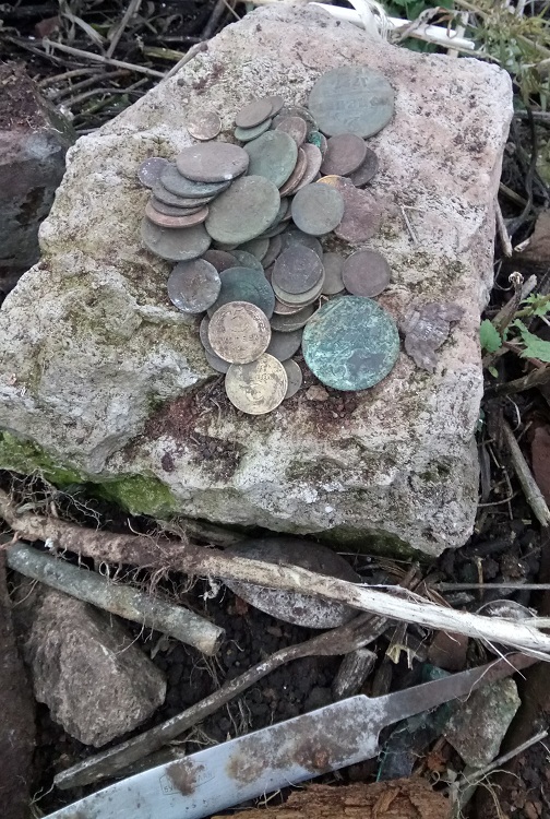 Приветствую всех. Вчера хапнул на распашке ряда фундаментов где живого места от ям предыдущих копарьков небыло, походу набрали и без этого богато, по свежей распашке то... Было странно что такого ряда домов небыло на карте генштаба... В 500м. показан мини посёлок примерно из такого же кол-ва домиков... И другие гораздо меньшие...