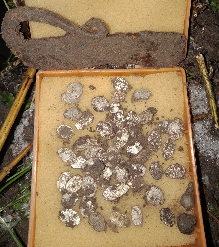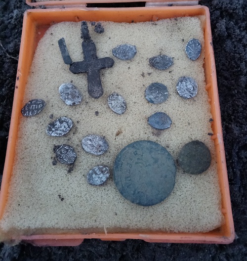 А это монета и ложка,не вошли.. Надо доказывать и я бы углубился ещё на штык, а может и два. Вариант что может всё быть глубже, исключать не надо. С уважением. |